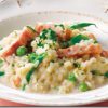 クリーミーな味わいにベーコンの旨みがきいてます!朝食にいかがですか。 春のお豆とベーコンのリゾット 材料(2人分)ベーコン(ブロック)……………… 80gタマネギ(みじ...
